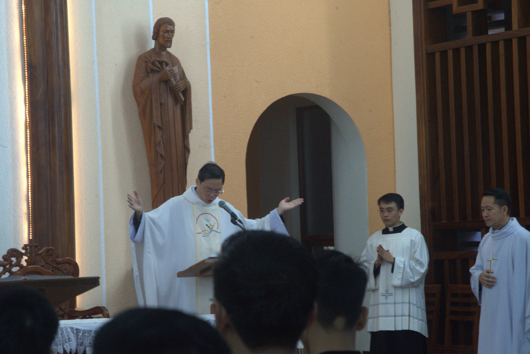 Vì là thời gian quý thầy ĐCV tĩnh tâm năm (27/9-02/10/2025), nên tham dự Thánh lễ có cha giảng phòng Giuse Phan Quang Trí O.Carm, quý cha, quý thầy ban Thần học, quý sơ Dòng Nữ Tỳ Chúa Giêsu Linh mục và anh chị em nhân viên đang phục vụ tại ĐCV.