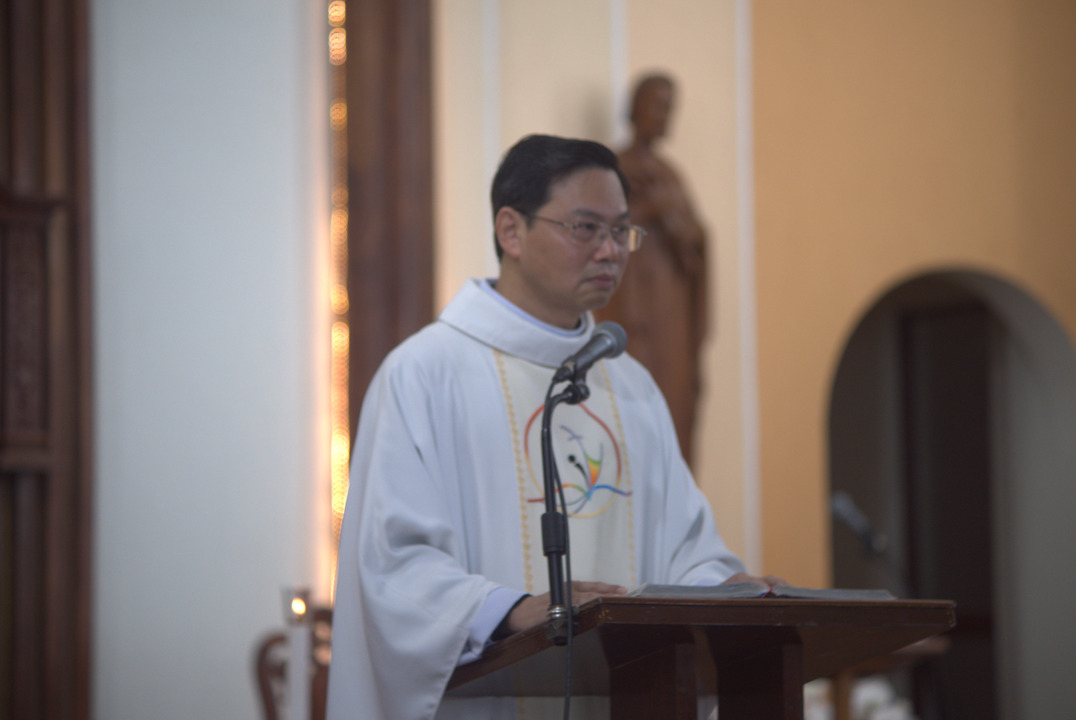 Cha Giám đốc chia sẻ: Hai Tông đồ này theo Chúa Giêsu đã lâu nhưng con người chưa được biến đổi. Các ông chỉ được biến đổi sau khi Chúa Giêsu chịu khổ nạn và Phục Sinh, bằng chứng là Gioan đã đứng dưới chân thập giá chứng kiến tận mắt cái chết của thầy mình. Cũng từ bài Tin Mừng, cha Giám đốc cho cộng đoàn thấy: “Đi theo Chúa không phải được khen, hay chờ người khác khen mà phải chấp nhận sống ngược lại; chấp nhận lời quở trách, chứ đừng sống vì lời khen của ai đó. Biết rút kinh nghiệm từ những khuyết điểm của người khác để từ đó sửa mình, và nhìn vào gương sáng của người anh em để sống tốt hơn”. Cuối cùng, ngài chia sẻ về ngày kỷ niệm hồng ân thánh chức linh mục: “20 năm linh mục không phải chỉ đón nhận lời khen, hay lời chúc mừng, nhưng còn là thời gian suy gẫm, sống và ở lại với Chúa…”.
